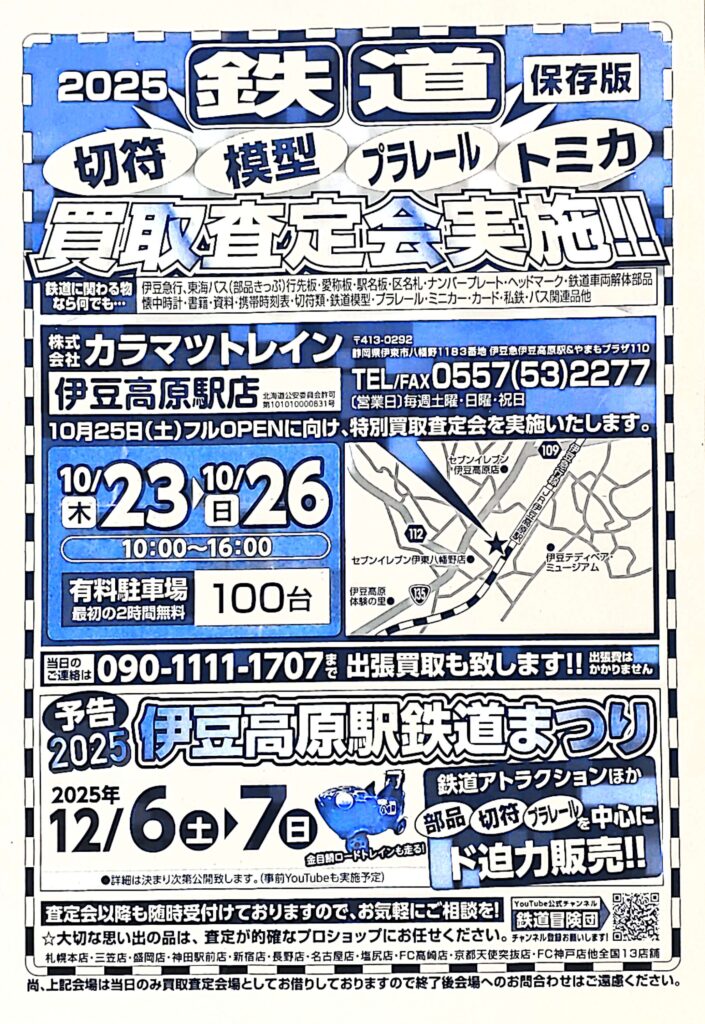 2025鉄道グッズ 買取査定会(カラマツトレイン)(10月23日~26日)